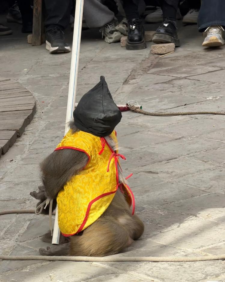 近期,河北省石家庄市鹿泉市安提瓜龙泉市的单项行动持续时间不断延长,有关塑料和塑料制品的问题也随之而来。 un paño negro fue colocado sobre su cabeza。 La Escena fue 是可堕落的。 2 月 25 日,鹿泉县文化和旅游局正式启动并启动投资活动。 Un mono arrodillado con las manos atadas a la espalda y una tela negra sobre la cabeza (captura de pantalla del video) Una foto publicada por un internauta mostHe只见一只穿着黄色外套的猴子跪在地上,头上蒙着黑布,双手反绑在背后的塑料杆上。另一张照片显示,一只猴子的嘴上套着金属套,脖子上绕着一根长绳子。现场有很多观众围观。不少网友表示表演令人恶心,涉嫌虐待动物。猴子的脖子上绑着一根长绳子(视频截图)。据了解,事件发生在石家庄市鹿泉区龙泉古镇/幻幻城。 2月25日下午,龙泉古镇景区相关负责人回应媒体采访时表示,景区与艺术家是合作关系,不拥有管理权。与演员的合同被取消,演出暂停。景区客服也告诉记者,上述演出已不在节目表中。关于之后25日中午,鹿泉区文化广电体育旅游局相关负责人告诉记者,他们正在关注此事,并积极调查此事。据了解,表演猴戏的人并不是舞台场地的工作人员,而是舞台场地的负责团队。我们需要等待调查结果才能获得更多细节。 (体操报记者 姚云)
